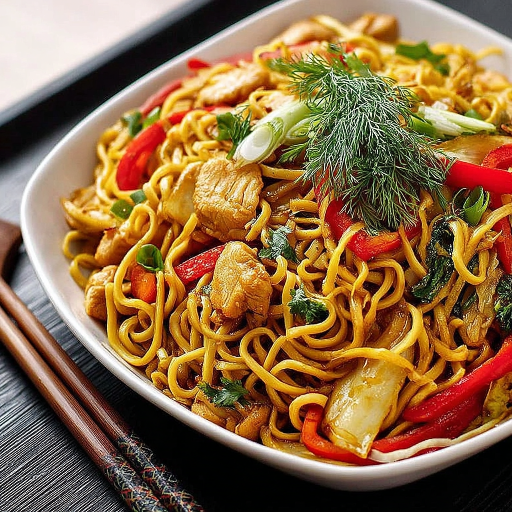 Les nouilles asiatiques sautées au poulet et légumes croquants sont un plat équilibré, savoureux et très populaire dans la cuisine asiatique. Cette recette associe des nouilles tendres, du poulet juteux et des légumes colorés, le tout enrobé d’une sauce parfumée. C’est un plat idéal pour un repas rapide en semaine, mais aussi assez gourmand pour impressionner des invités.