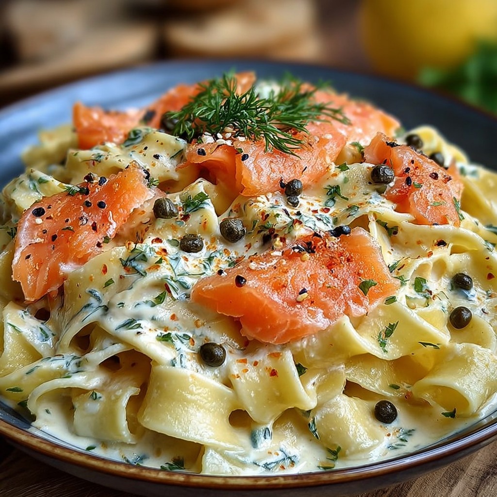 La recette peut être adaptée en utilisant du fromage type ricotta ou mascarpone pour varier la texture et la richesse. Des zestes de citron ou une pincée de piment d’Espelette peuvent être ajoutés pour relever la saveur. Les pâtes peuvent être remplacées par des tagliatelles complètes ou sans gluten selon les préférences. Le saumon fumé peut être complété par des crevettes ou des dés de saumon frais pour une version plus généreuse.