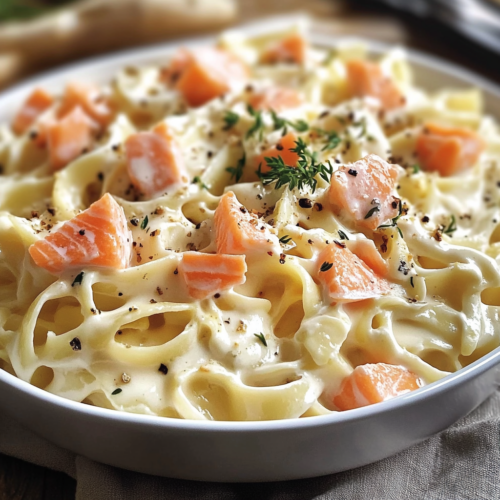 Un plat gourmand et réconfortant, idéal pour les amateurs de saveurs raffinées et onctueuses. Ces nouilles en ruban sont enveloppées dans une sauce crémeuse, combinée au goût fumé du saumon. Parfait pour un dîner chic mais facile à préparer.