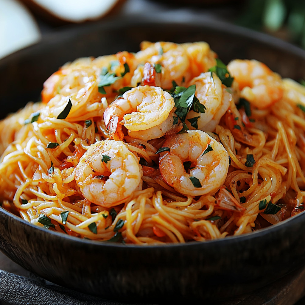 Nouilles sautées aux crevettes et lait de coco : Une Recette Exotique et Savoureuse