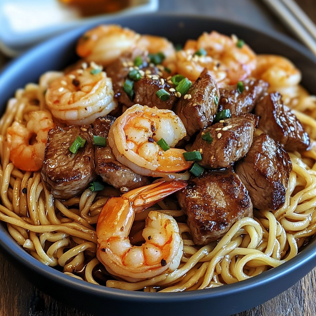 Nouilles Teriyaki au Steak et Crevettes : Un Plat Délicieux et Équilibré