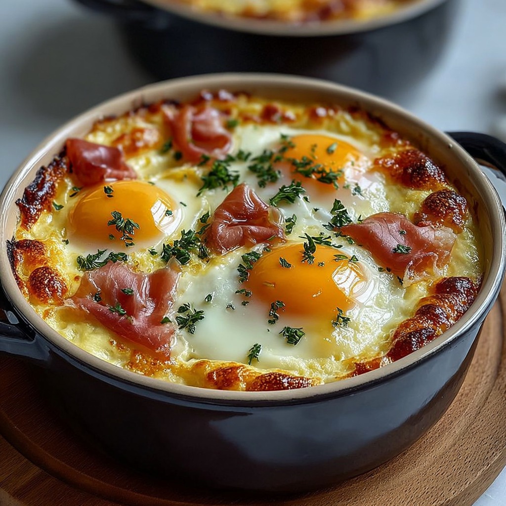 Œufs cocotte gratinés au jambon cru