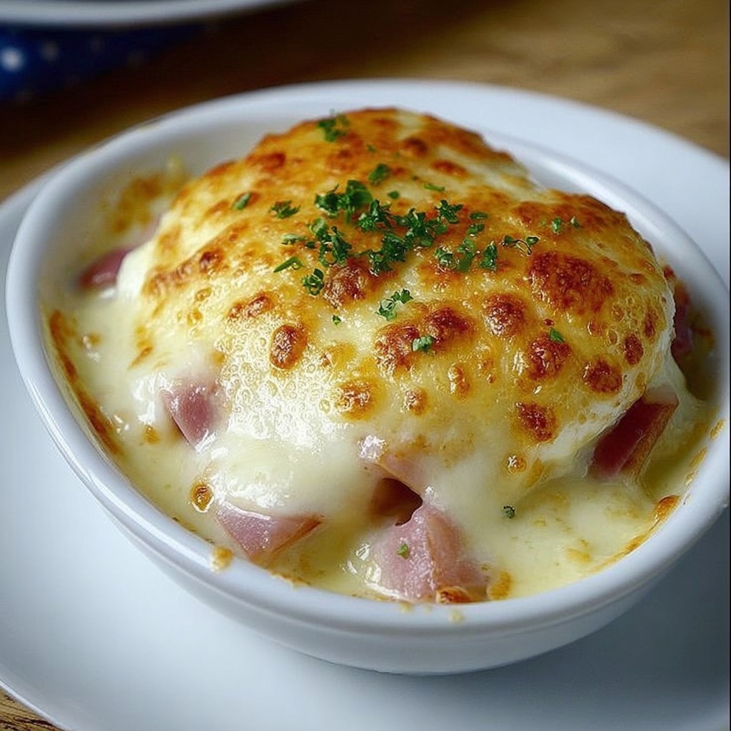 Les œufs durs au jambon et sauce béchamel fromagée représentent une parfaite illustration de la cuisine française classique : simple, généreuse et savoureuse. Chaque bouchée offre une combinaison harmonieuse de textures et de saveurs : la fermeté de l’œuf, la tendreté du jambon et la richesse de la sauce crémeuse et fromagée. C’est un plat qui plaît aux petits et aux grands, qui peut s’adapter à toutes les occasions, et qui reste un incontournable des repas maison réconfortants. Il illustre également l’art de transformer des ingrédients simples et accessibles en un plat élégant et gourmand, capable de séduire par sa générosité et sa finesse.