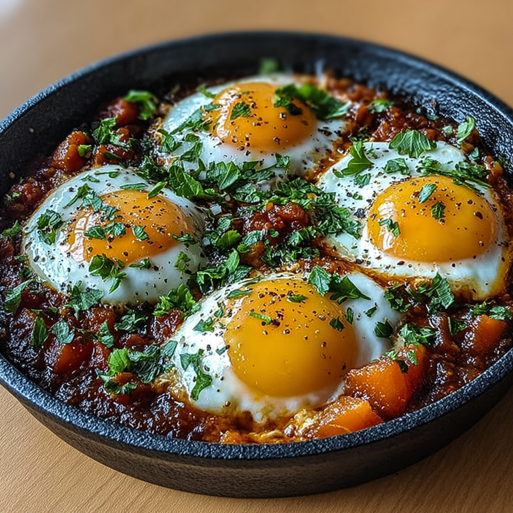 La chakchouka, ou œufs mijotés aux tomates concassées, est un plat emblématique de la cuisine méditerranéenne et maghrébine. Elle est réputée pour sa simplicité, sa rapidité et sa richesse en saveurs. Composée d’ingrédients accessibles et peu coûteux — tomates, œufs, oignons, épices — elle se transforme en un repas complet, savoureux et réconfortant, parfait pour toute la famille.