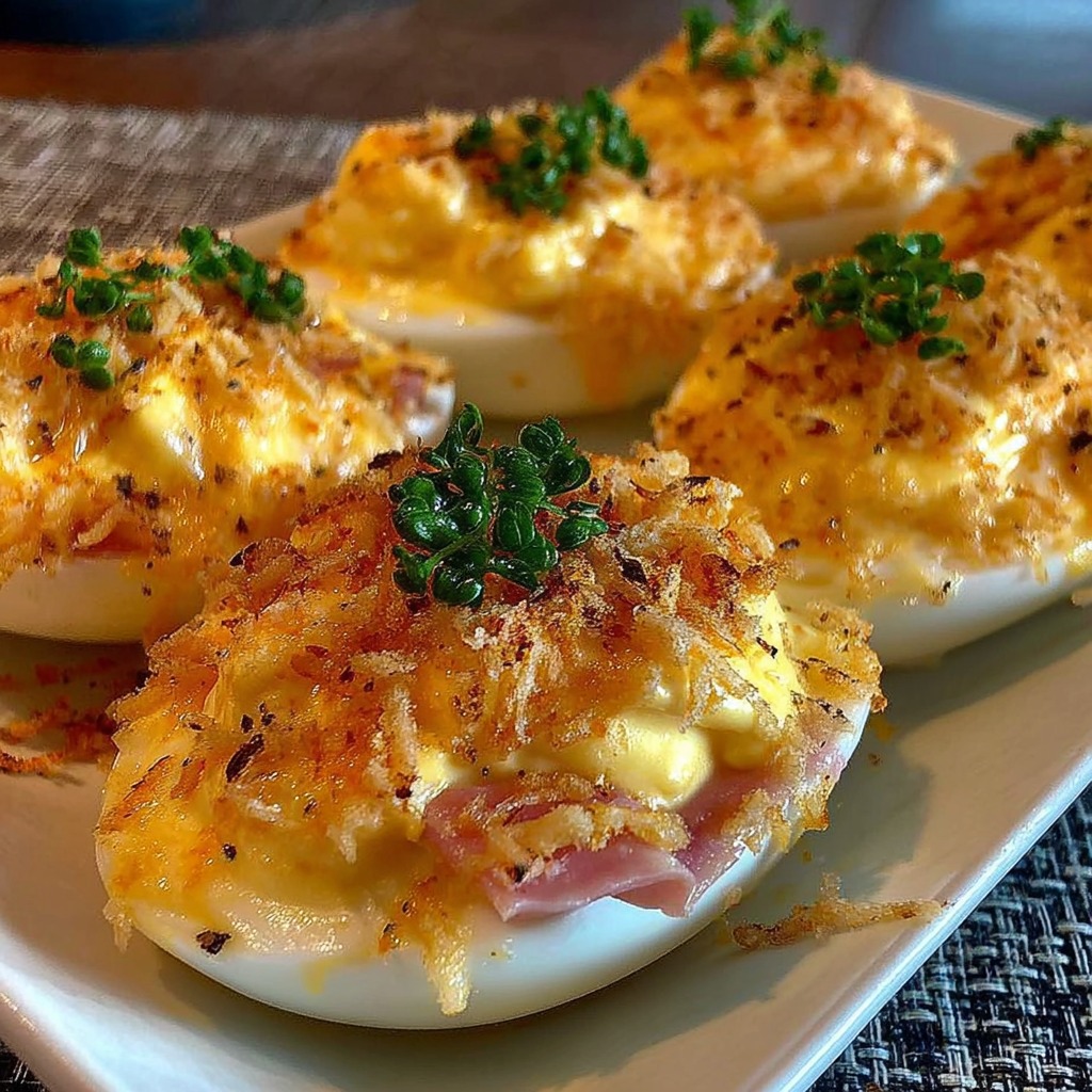 Présentation des œufs mimosa au jambon