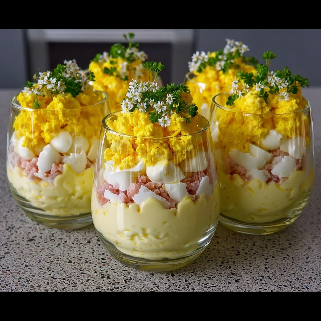 Les œufs mimosa en verrines représentent l’équilibre parfait entre tradition et modernité. Faciles à préparer, élégants à présenter et harmonieux en saveurs, ils constituent une entrée fraîche et accessible à tous.