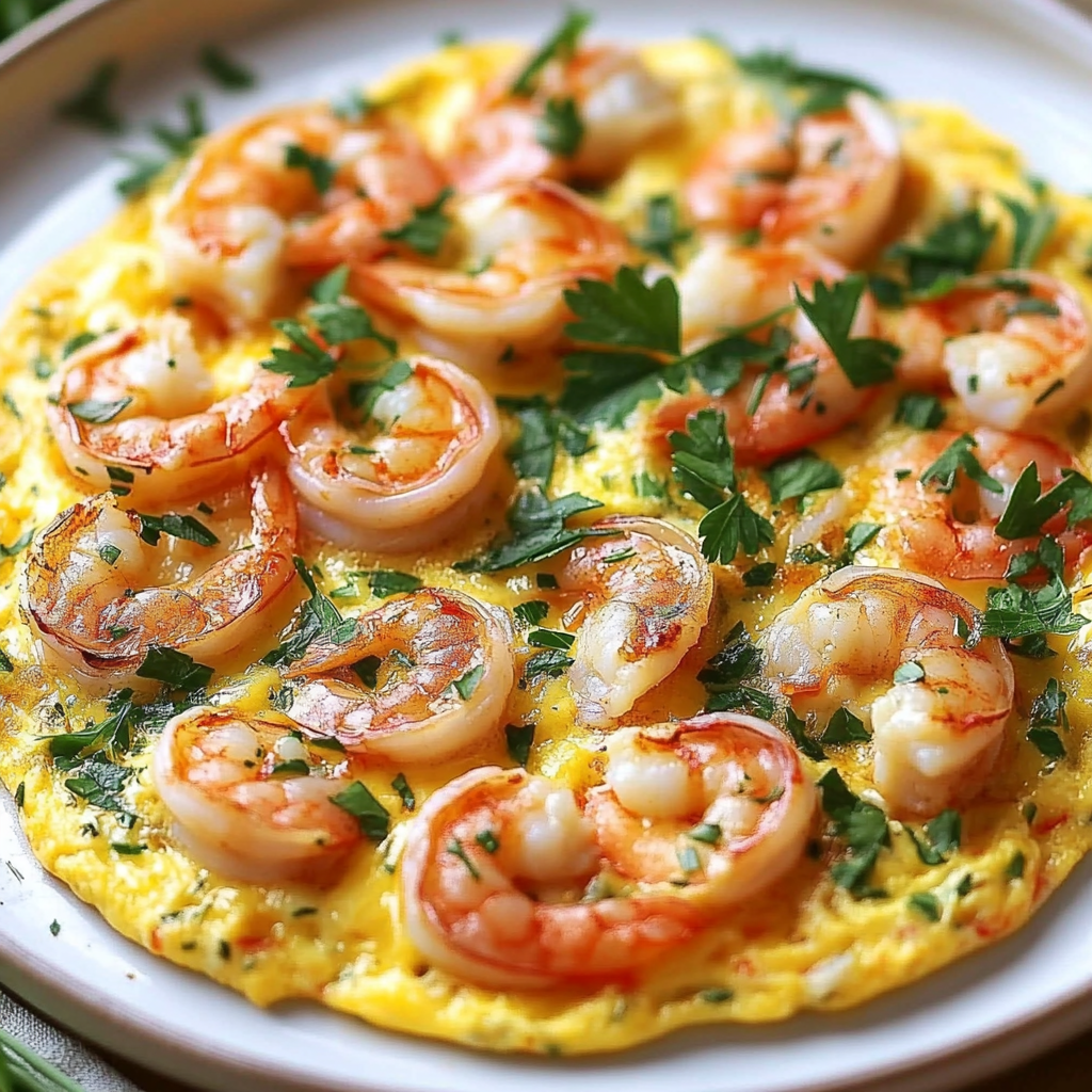 Cette omelette est une excellente source de protéines, grâce aux œufs et aux crevettes. Les graisses saines provenant de l’huile d’olive ajoutent une richesse tout en étant bénéfiques pour la santé cardiovasculaire.