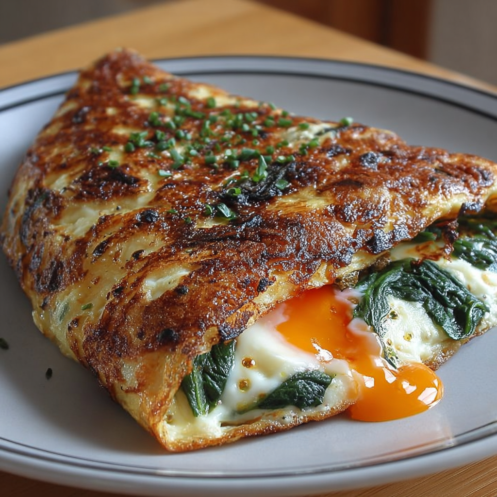 Cette omelette croustillante au fromage, épinards et cœur d’œuf coulant est la preuve qu’un plat simple peut devenir exceptionnel avec la bonne technique. Rapide, nourrissante et savoureuse, elle est idéale pour tous les moments de la journée.