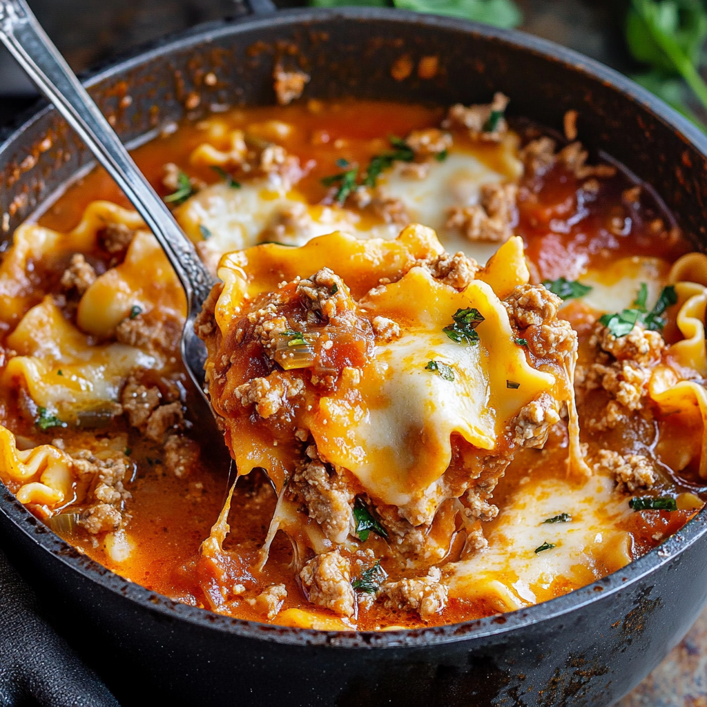 La One-Pot Lasagna Soup est la recette idéale pour les amateurs de plats simples et réconfortants. Avec son goût riche en fromage, ses morceaux de pâtes fondants et ses saveurs italiennes authentiques, elle vous transportera directement en Italie sans quitter votre cuisine. De plus, grâce à sa facilité de préparation et au peu de vaisselle à faire, vous gagnerez du temps tout en régalant toute la famille. Essayez-la dès aujourd’hui et découvrez pourquoi cette soupe est rapidement devenue un plat favori dans de nombreuses cuisines.