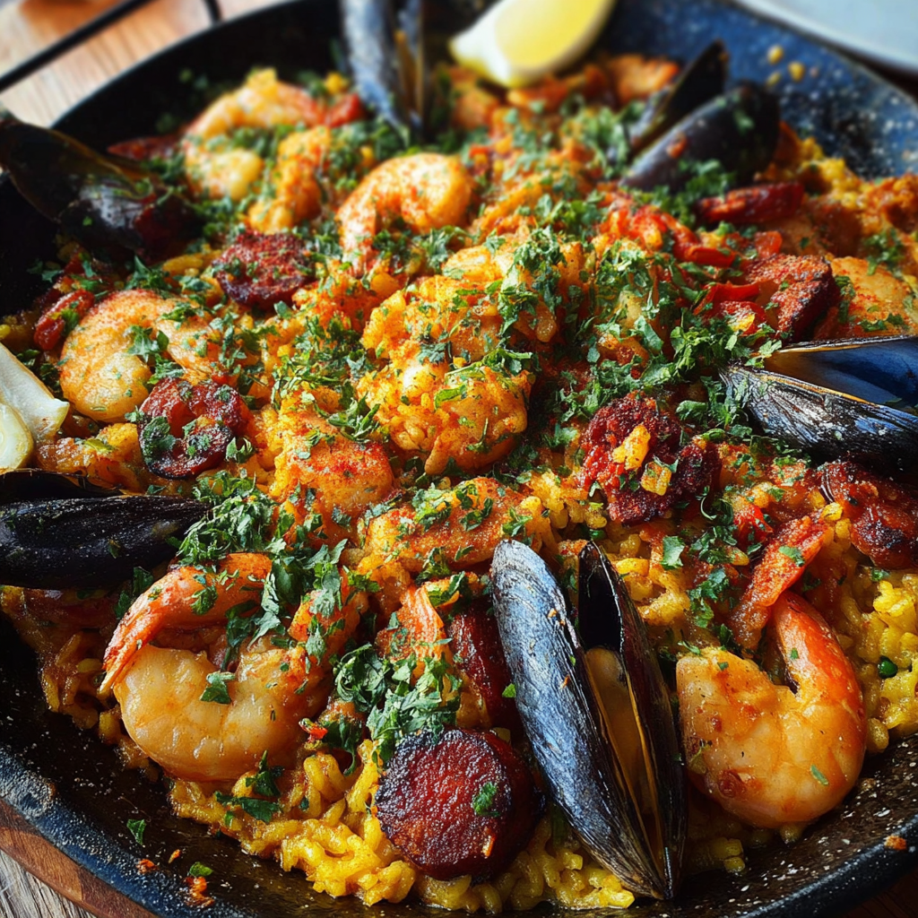 Ce plat complet est idéal pour un repas familial ou un dîner entre amis. Grâce à sa richesse en ingrédients et à son parfum unique de safran, la paëlla séduit toujours les amateurs de cuisine méditerranéenne.