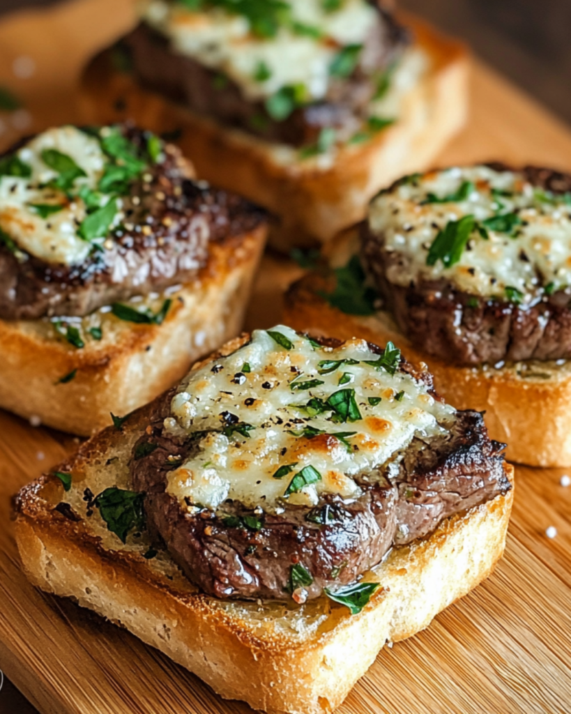 Des bouchées de steak savoureuses sur du pain à l’ail croustillant, parfaites pour un apéritif ! Ingrédients : Instructions : 1️⃣ Préparez les steaks : 2️⃣ Cuisson des steaks : …