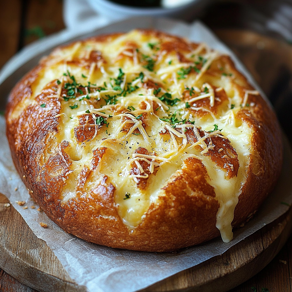 - Servir : Sortez le pain du four et servez-le immédiatement pour profiter de la texture fondante du fromage et de la croûte dorée.