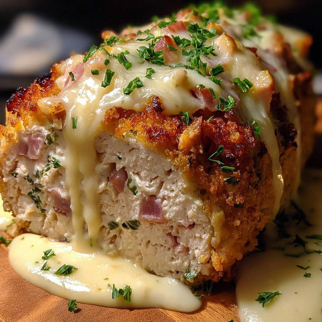 En conclusion, le pain de viande façon poulet cordon bleu est un plat à la fois réconfortant, gourmand et adaptable. Il allie la tendreté du poulet, la saveur du jambon et le fondant du fromage, tout en offrant une présentation élégante et conviviale. Que ce soit dans sa version classique, crémeuse, aux herbes ou avec une croûte dorée, ce pain de viande séduit par sa simplicité, sa richesse en saveurs et sa capacité à rassembler autour d’une table familiale ou festive.