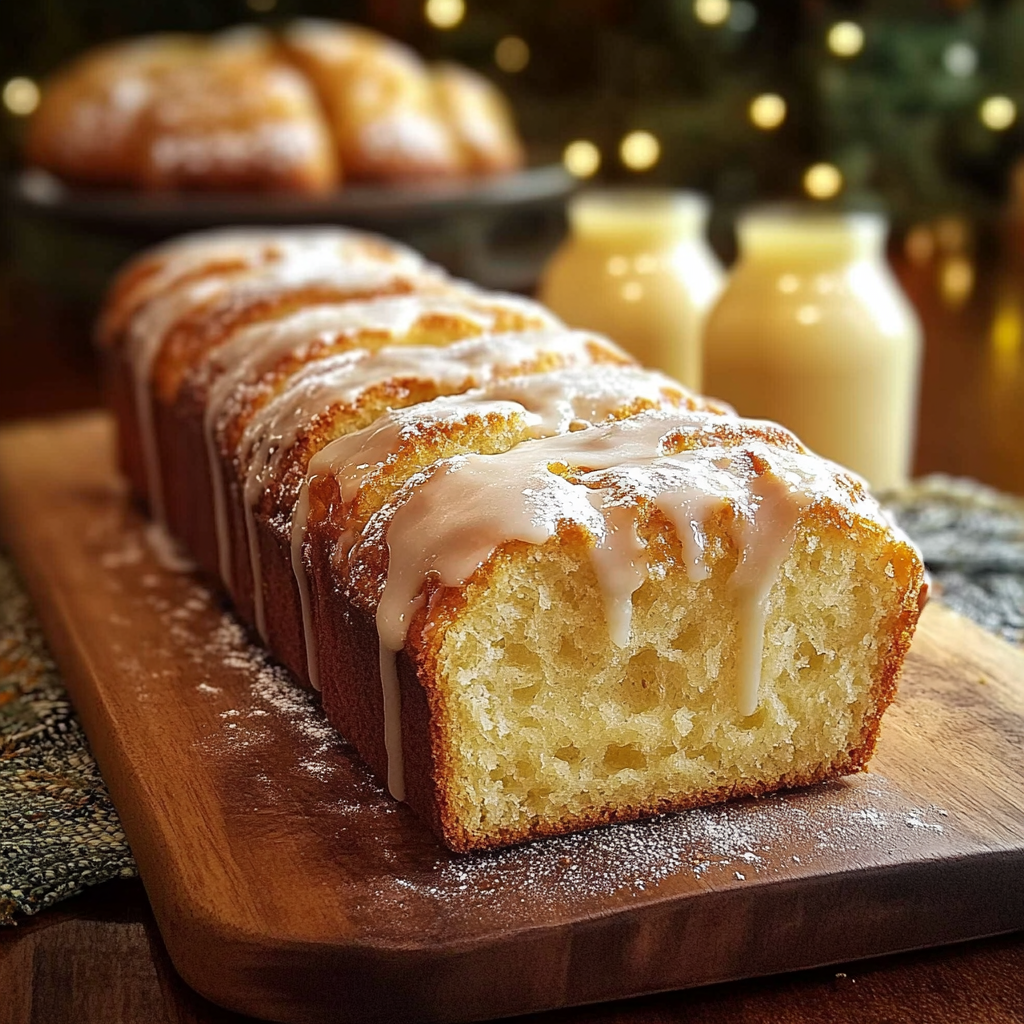 - Glaçage : Un léger glaçage à base de sucre glace et d’eggnog peut ajouter une touche festive.