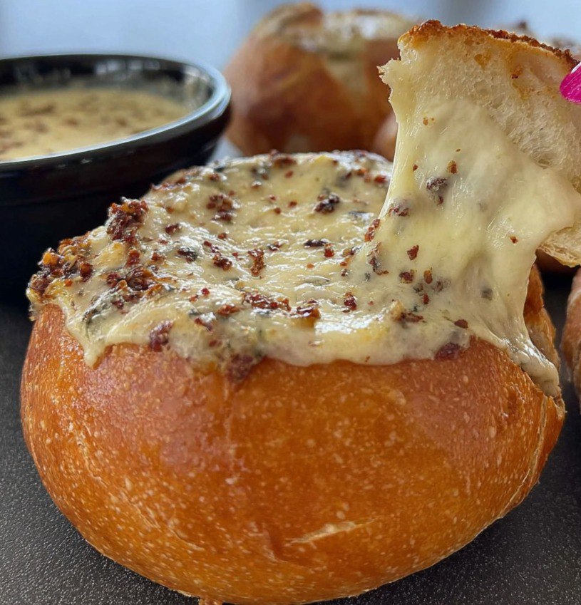 Le pain frais au fromage fondu est une recette chaleureuse, conviviale et généreuse qui plaît à tous les amateurs de fromage et de pain croustillant. Il s’agit d’un pain entier garni de fromages fondants, parfois enrichi d’herbes aromatiques ou de beurre à l’ail, que l’on fait cuire jusqu’à ce que le fromage soit parfaitement fondu et le pain bien doré. Ce plat peut être servi en apéritif, en entrée, ou même en accompagnement d’un repas simple. Il est parfait pour les soirées entre amis ou les repas partagés, car on le déguste en le déchirant avec les doigts, en trempant des morceaux dans le fromage fondant.