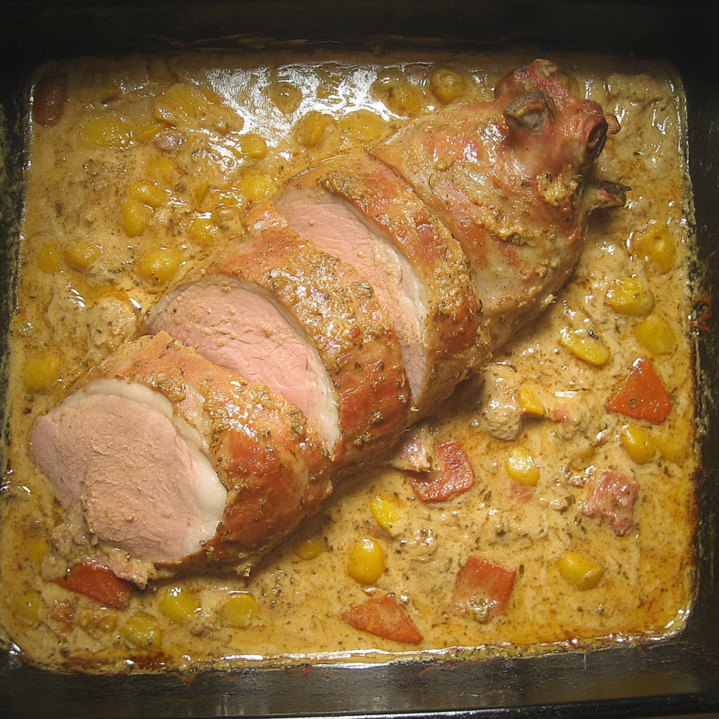 - Dans un plat allant au four, déposez la palette de porc marinée.