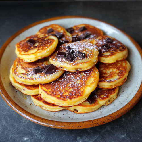 Avec cette recette, vos pancakes moelleux aux pépites de chocolat seront un vrai régal ! Dégustez-les chauds avec une garniture de votre choix pour un moment de pur plaisir.