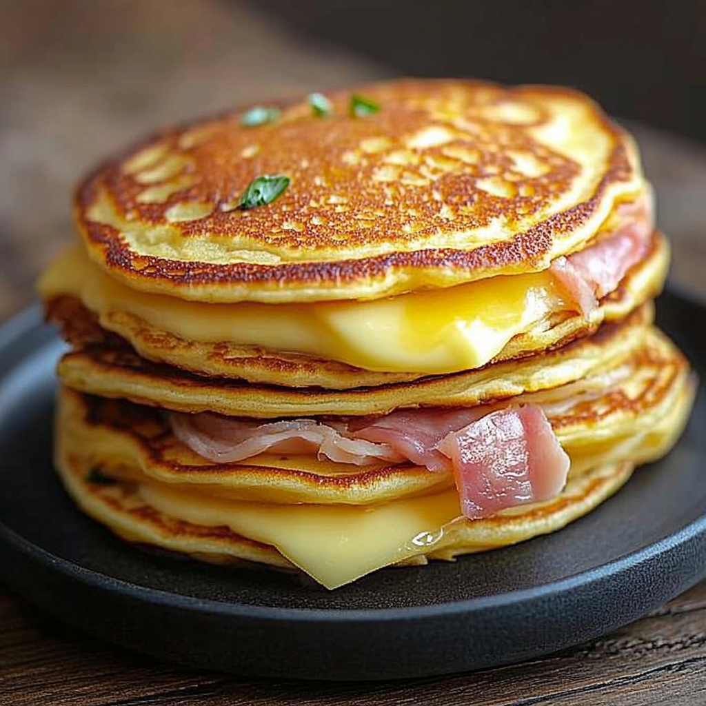 Savourez ces délicieux pancakes salés, ultra moelleux, garnis de fromage fondant et de tranches de jambon savoureuses . Parfaits pour un brunch du week-end, un apéro dînatoire ou même un dîner rapide et original .