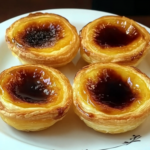 - Enfournez pendant 10 à 12 minutes, jusqu’à ce que les pastéis soient dorés et que la surface présente de petites taches brunes caractéristiques.