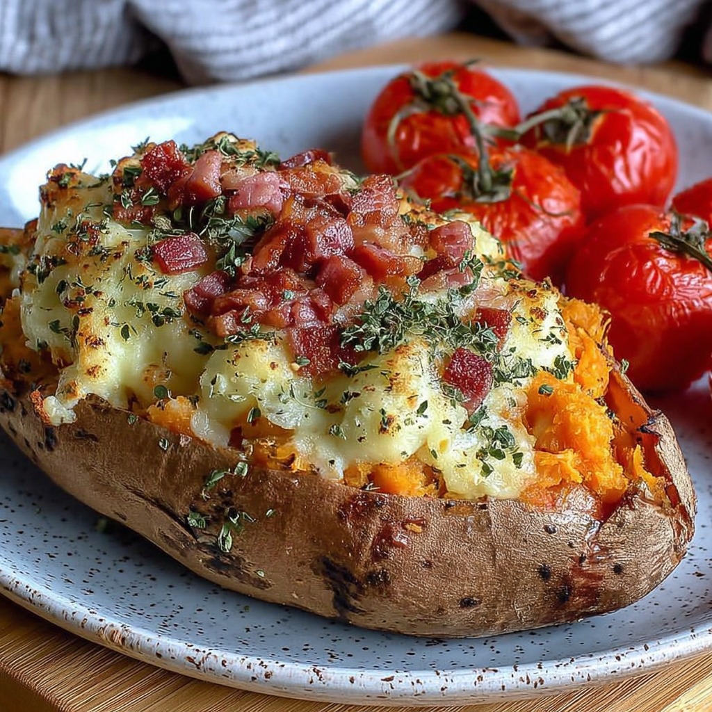 La patate douce farcie au fromage et lardons est un plat rustique, fondant et savoureux qui combine simplicité et gourmandise. Elle met en valeur des ingrédients accessibles tout en offrant un équilibre parfait entre douceur, onctuosit