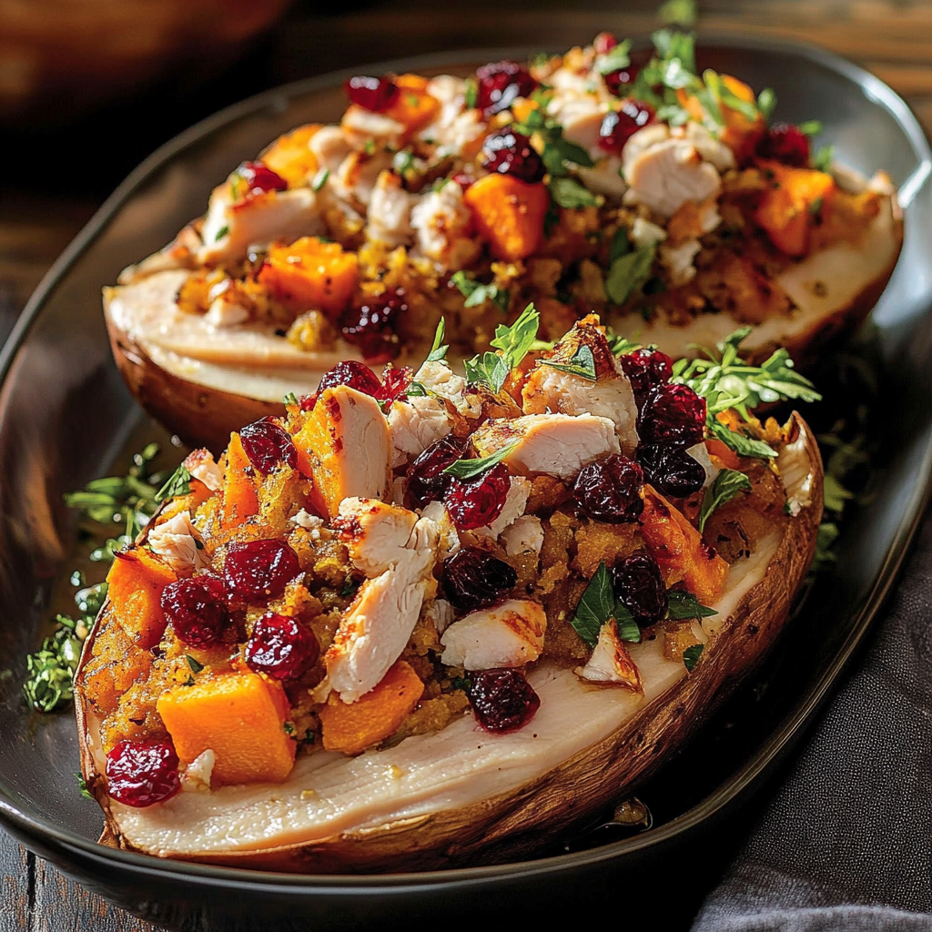 Ces patates douces farcies à la dinde rôtie et aux canneberges sont une façon délicieuse de célébrer l’automne tout en utilisant les restes des repas de fête. Faciles à préparer, elles sont parfaites pour un repas en famille ou entre amis. Leur goût équilibré entre douceur, acidité et épices en fait un plat réconfortant, qui plaira tant aux petits qu’aux grands. Essayez cette recette et laissez-vous emporter par les saveurs réconfortantes de la saison