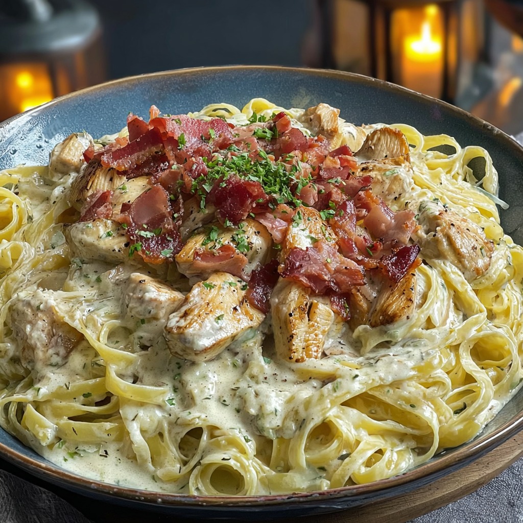 Pâtes à la crème avec poulet et bacon