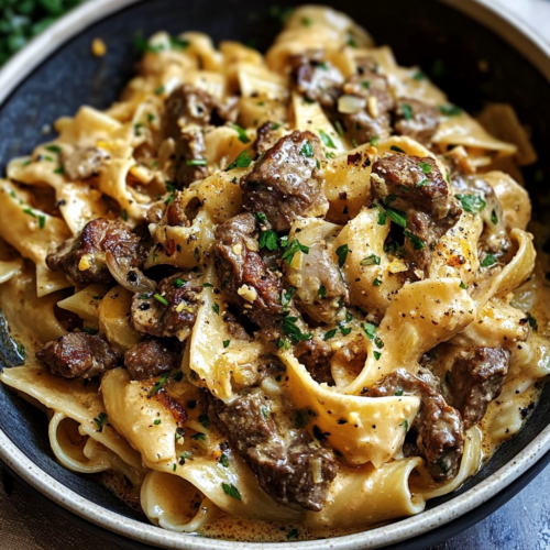 Les pâtes au bœuf dans une sauce crémeuse sont un classique qui n’a jamais déçu personne. Ce qui les rend encore plus irrésistibles, c’est l’ajout d’une sauce à base de crème épaisse et de bouillon de bœuf, enrichie de paprika pour une petite touche de chaleur, le tout accompagné de fromage cheddar râpé qui fond parfaitement. Avec cette recette, vous allez obtenir une sauce riche et crémeuse qui enrobe chaque bouchée de pâtes pour un plaisir total.