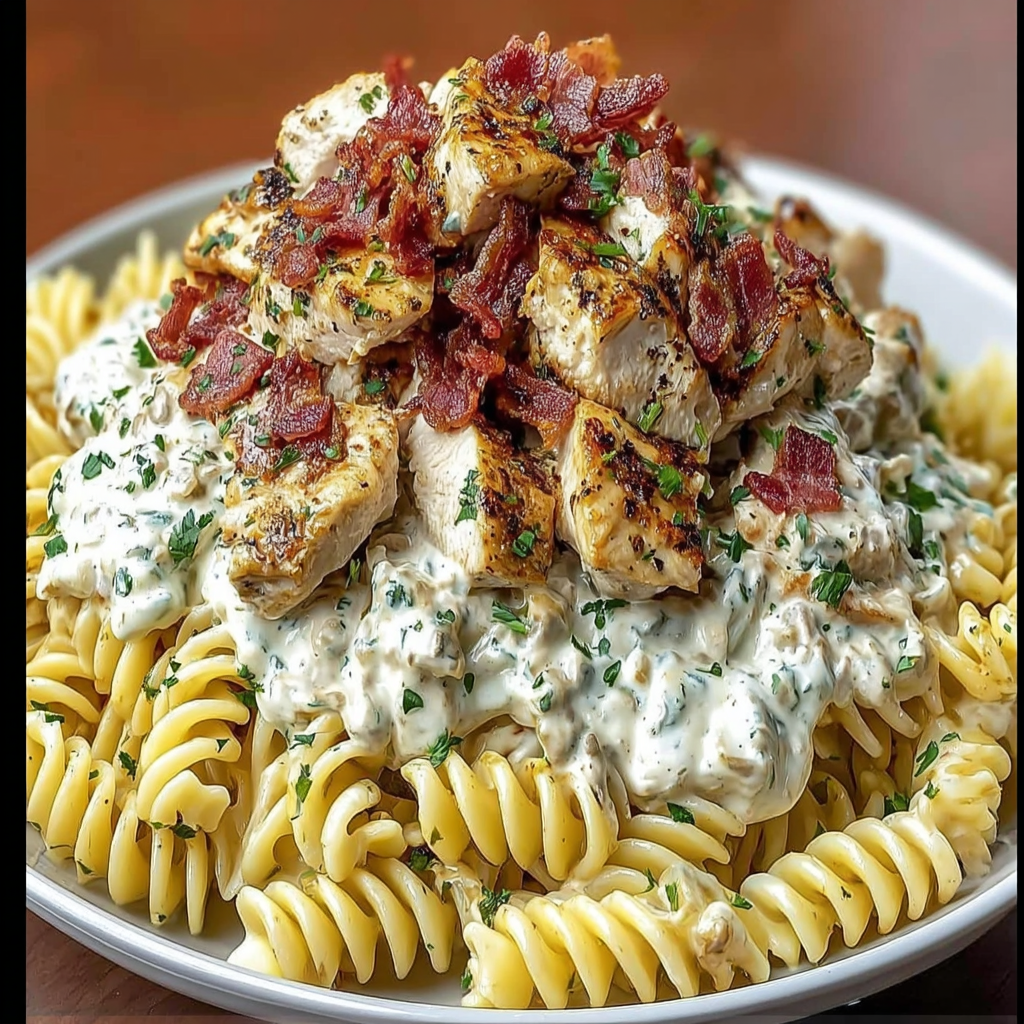 Les pâtes au poulet et au bacon ranch sont l’un de ces plats qui mettent tout le monde d’accord. Riches, crémeuses, parfumées et réconfortantes, elles réunissent trois saveurs puissantes : le poulet tendre, le bacon croustillant et la sauce ranch onctueuse. Ce plat est né de l’inspiration américaine, où les sauces ranch sont très populaires, puis a été revisité dans de nombreuses cuisines familiales à travers le monde.