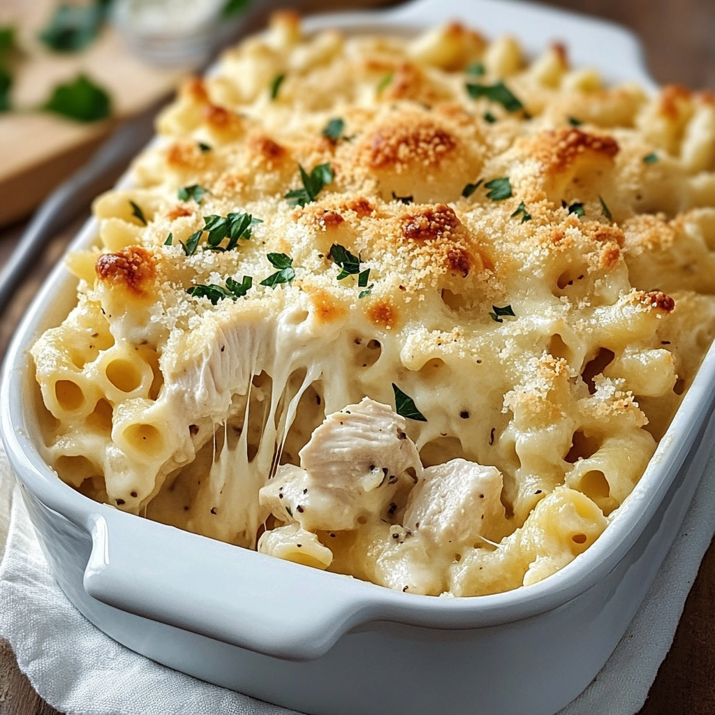 Pâtes au Poulet et Parmesan à l’Ail Crémeux