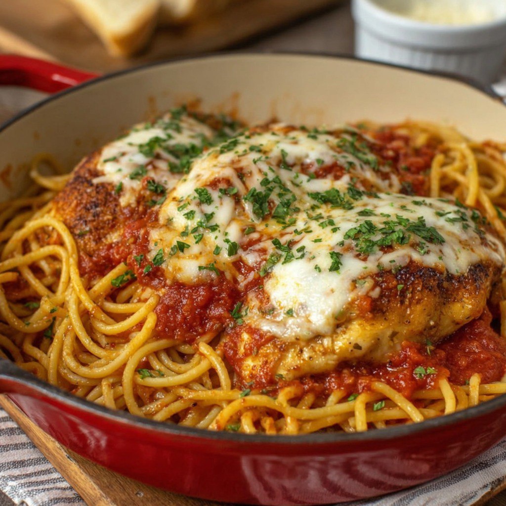 Préparer un repas savoureux et réconfortant n’a jamais été aussi simple qu’avec cette recette de pâtes au poulet et parmesan en une seule casserole. Ce plat généreux réunit les saveurs riches de la sauce marinara, la tendreté du poulet, et la douceur fondante des fromages pour créer un dîner délicieux, facile à réaliser, et idéal pour toute la famille.