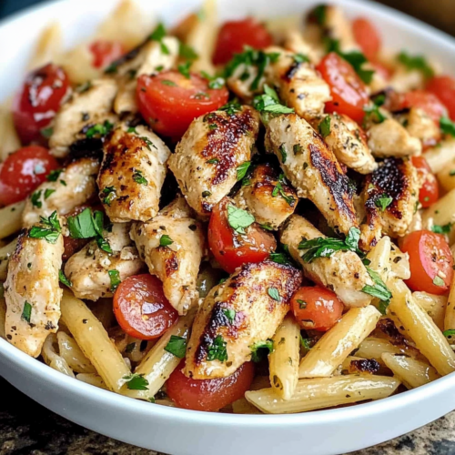 Les pâtes au poulet façon bruschetta sont un véritable hymne aux saveurs méditerranéennes. Cette recette combine la fraîcheur et l’acidité des tomates cerises, la puissance aromatique du basilic, et la gourmandise du poulet grillé, le tout lié par une sauce subtilement relevée au vinaigre balsamique. Facile à préparer et pleine de couleurs, elle est parfaite pour un dîner en semaine ou un repas convivial entre amis.
