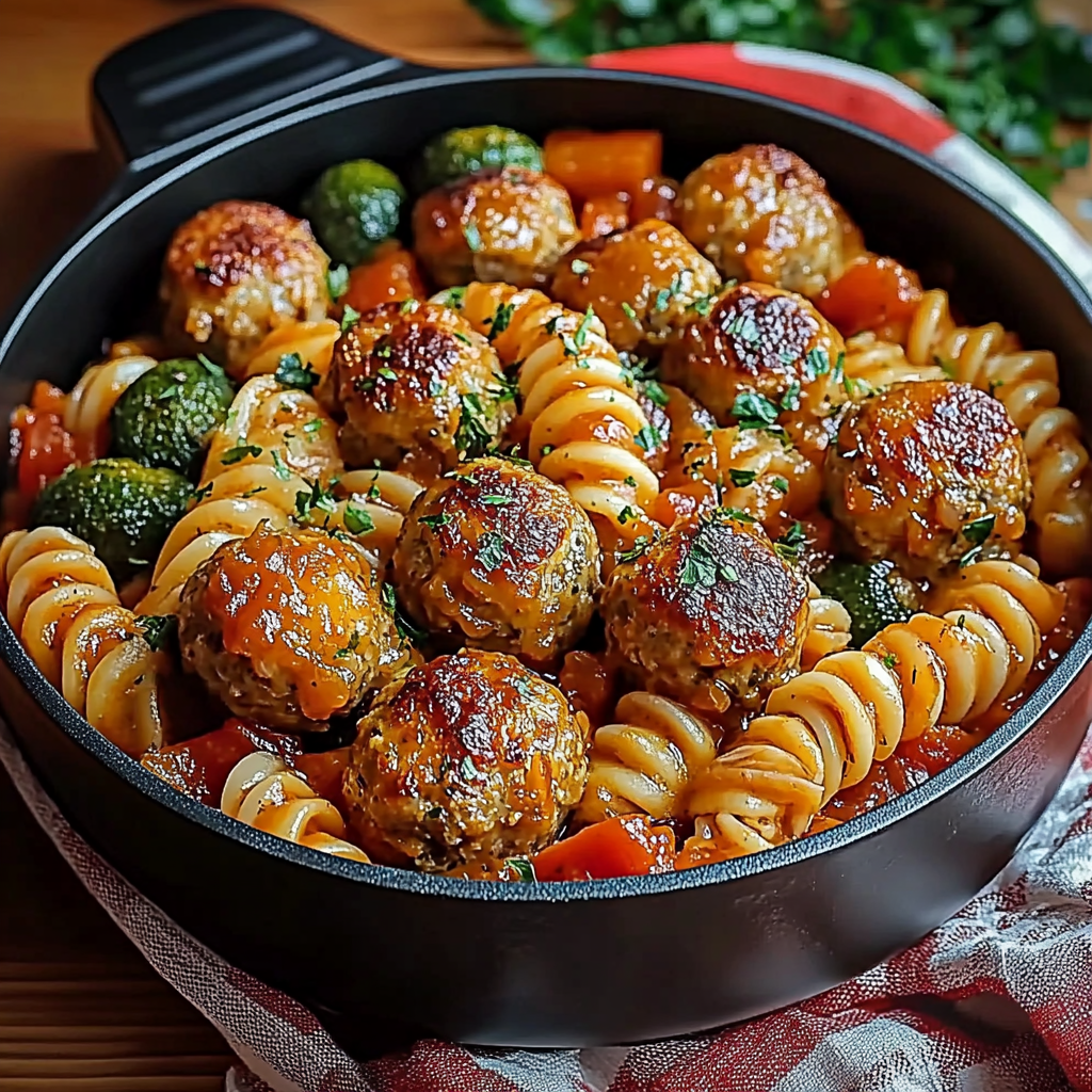 Pâtes aux Boulettes Gourmandes et Légumes en Sauce