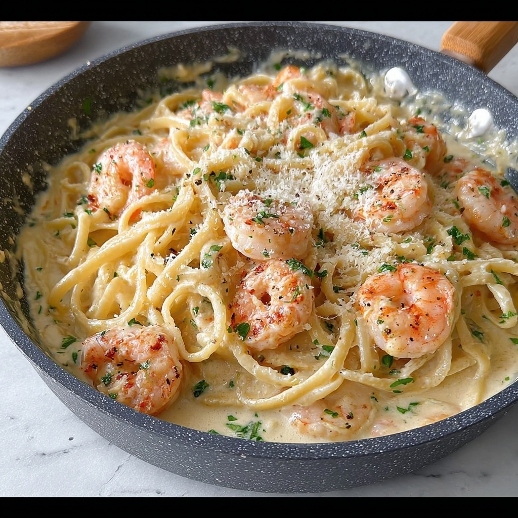 Pâtes aux Crevettes et Sauce Alfredo : Un Plat Crémeux et Savoureux