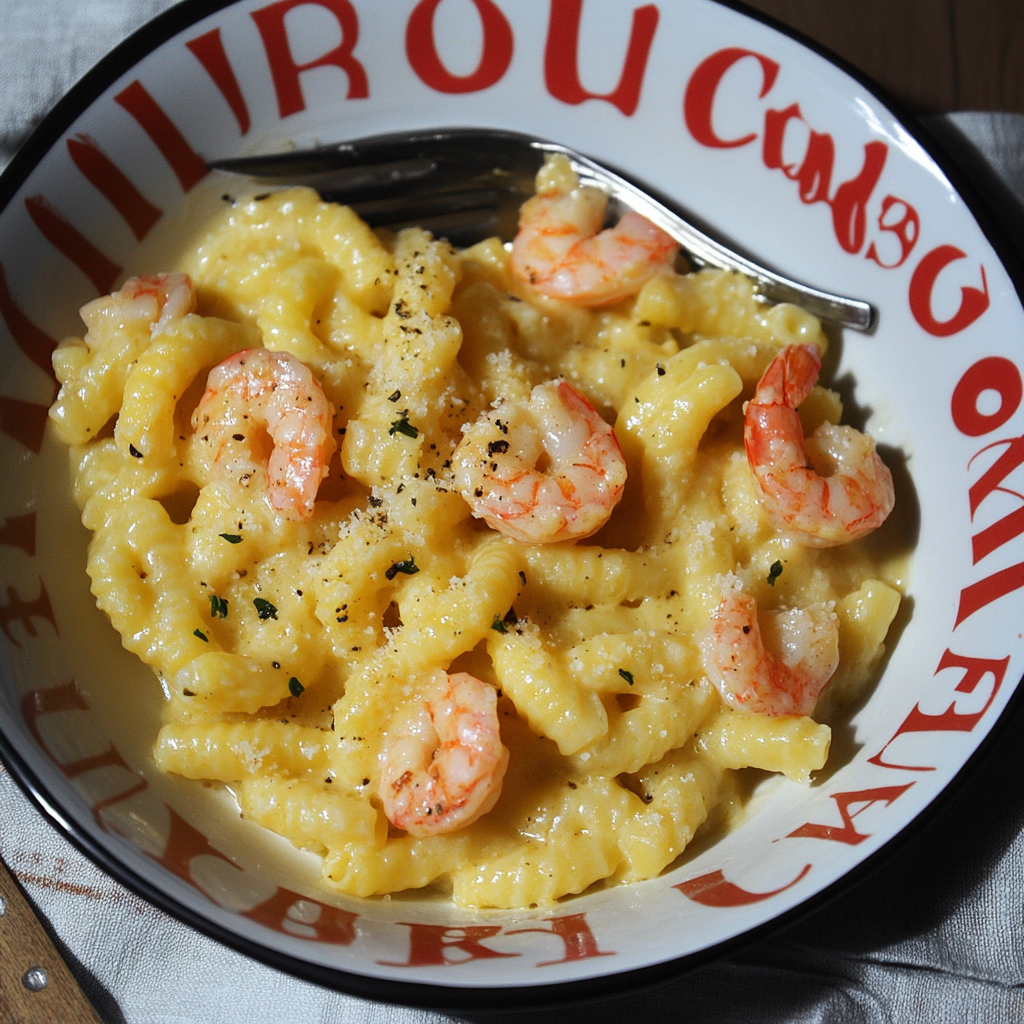 Pâtes aux Crevettes & Maroilles Fondantes