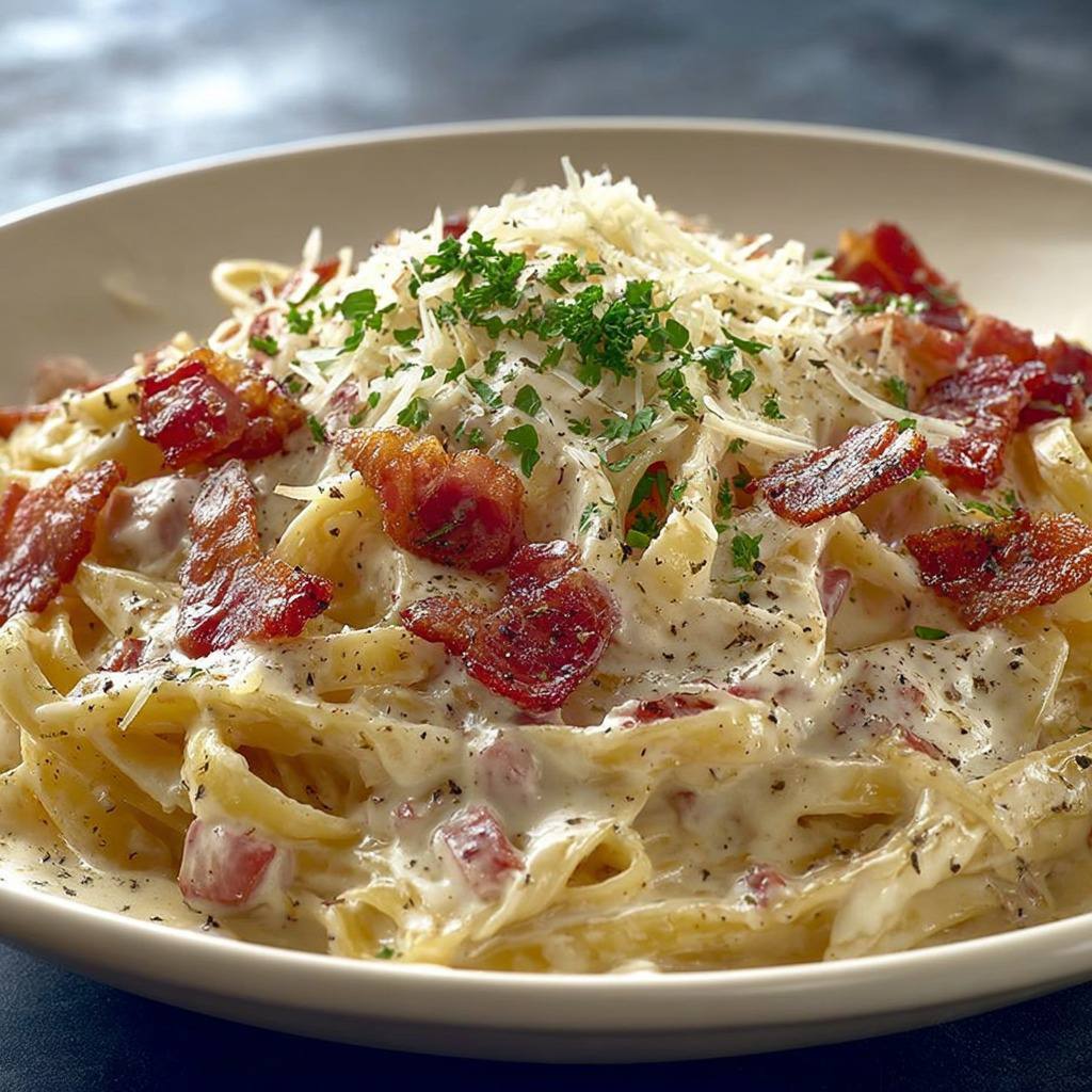 En conclusion, les pâtes à la crème et aux lardons fumés sont bien plus qu’un simple repas facile à préparer. Elles représentent un équilibre parfait entre tradition et modernité, entre gourmandise et convivialité. Leur sauce onctueuse, enrichie du goût fumé et intense des lardons, en fait un plat qui séduit toutes les générations. Qu’elles soient servies lors d’un dîner improvisé ou d’un repas convivial, elles gardent toujours leur pouvoir réconfortant et généreux. Elles incarnent à merveille la philosophie culinaire qui consiste à transformer quelques ingrédients simples en une expérience gustative mémorable.