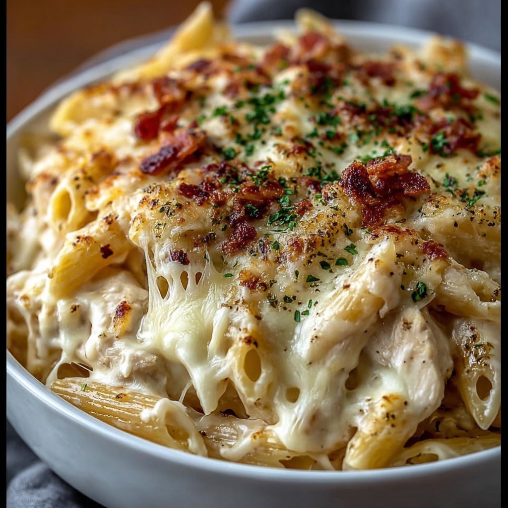 Pâtes crémeuses au poulet, bacon et ranch