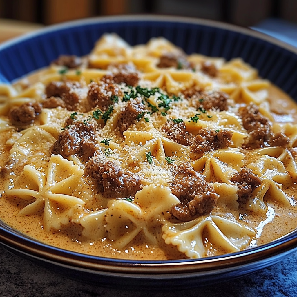 Les pâtes farfalle, avec leur forme de petits papillons, apportent une touche ludique et élégante à ce plat généreux au bœuf et à la crème. Facile à préparer, cette recette conjugue la douceur d’une sauce onctueuse avec la richesse du bœuf haché, pour un repas savoureux et rapide, parfait en semaine comme pour recevoir.