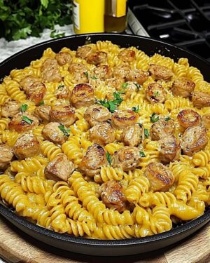 Dans le monde de la cuisine maison, il y a des recettes qui s’imposent comme des incontournables dès la première bouchée. La recette que nous allons explorer aujourd’hui – les Pâtes Rotini au Poulet, Saucisse et Cheddar en une seule casserole – est exactement de cette trempe. Facile, savoureuse, riche en textures et incroyablement réconfortante, elle coche toutes les cases pour un repas parfait en semaine, sans stress, ni vaisselle superflue.