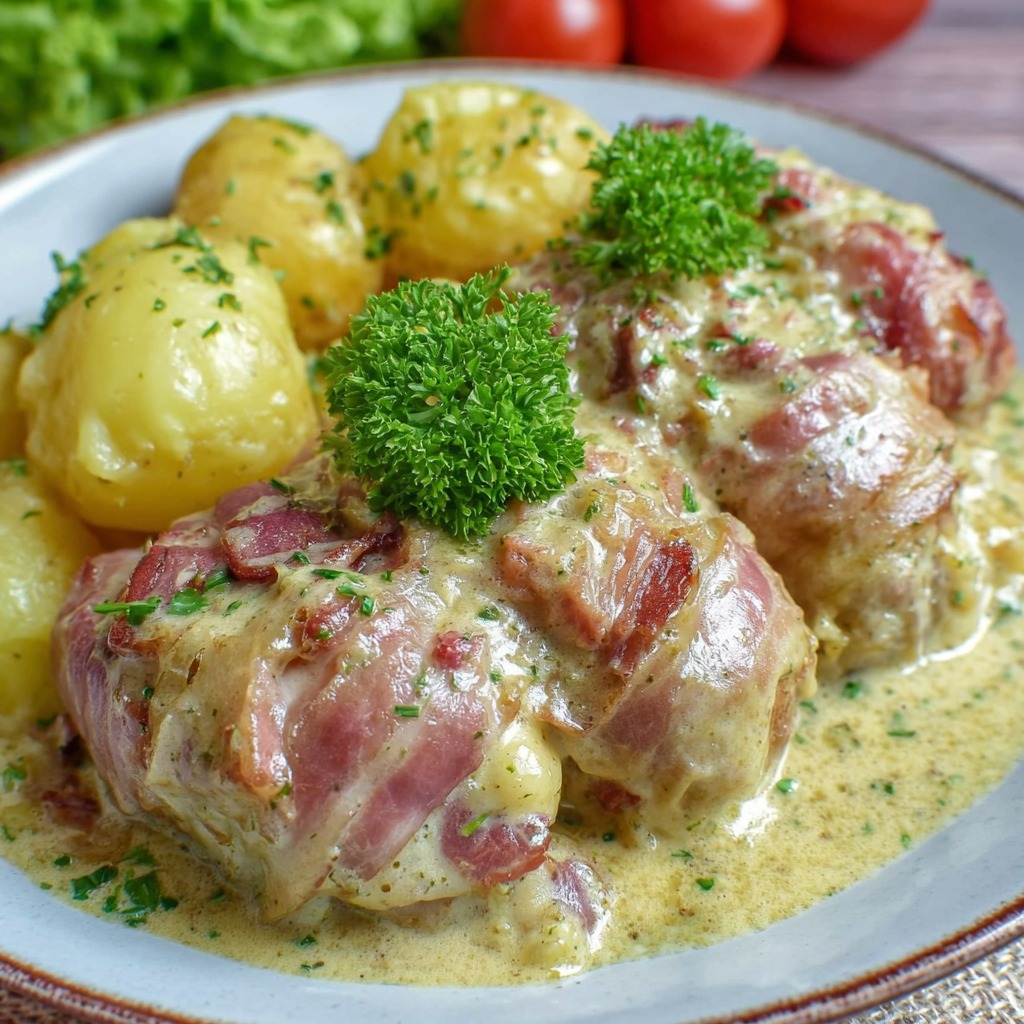 Paupiettes à la crème, lardons et pommes de terre fondantes