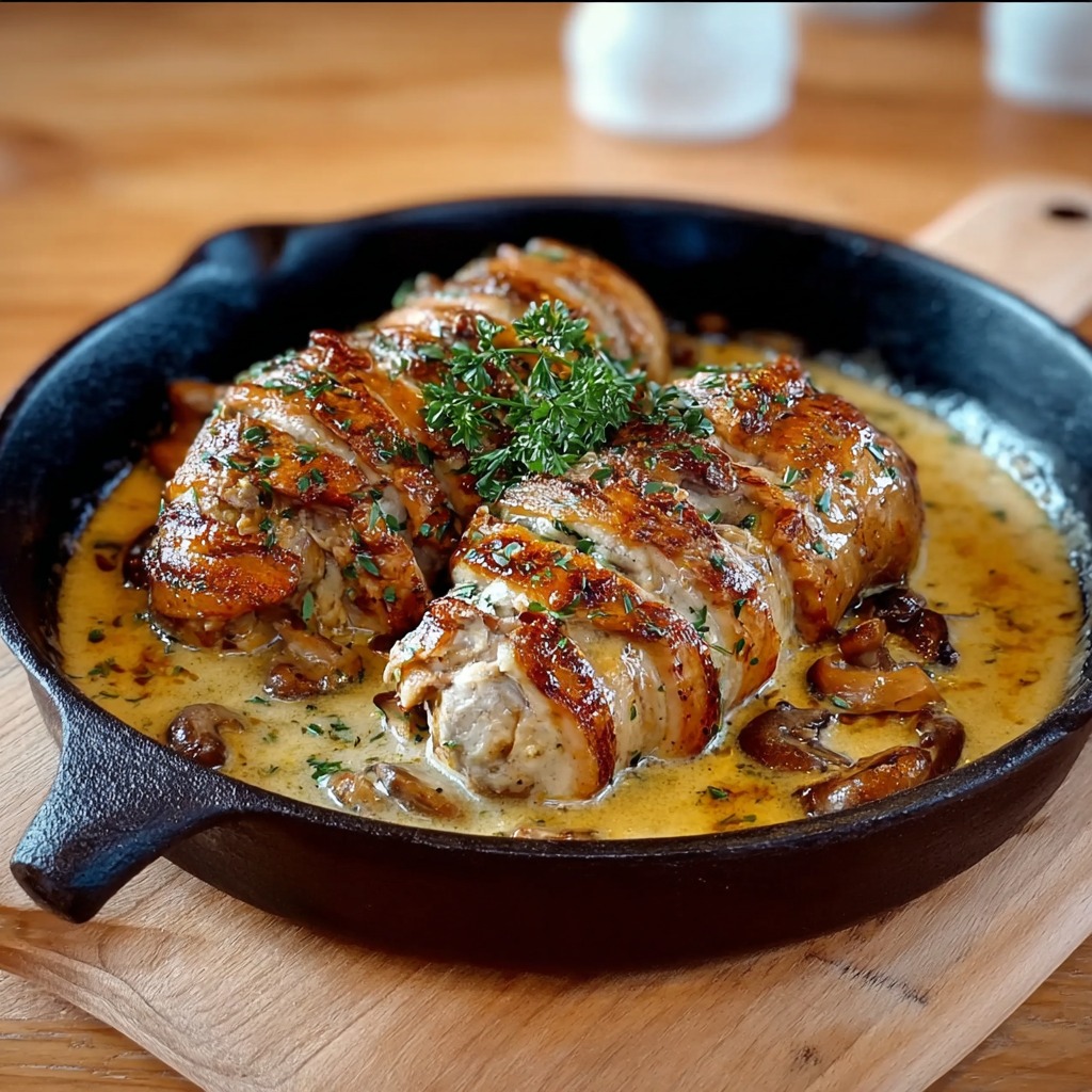 Cette recette peut être adaptée selon les préférences ou la disponibilité des ingrédients. D’autres champignons peuvent être utilisés, comme les pleurotes ou les morilles lorsque c’est la saison. Le bouillon de volaille peut être remplacé par un bouillon de légumes pour une version plus douce. Le vin blanc, indispensable pour donner de la personnalité à la sauce, peut être ajusté selon l’intensité souhaitée. Les herbes aromatiques peuvent aussi être variées : une touche de romarin ou de sauge peut apporter une nuance différente.