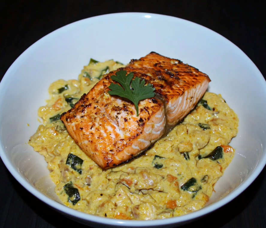 Le saumon est un poisson apprécié dans de nombreuses cultures pour sa richesse en oméga-3 et sa chair délicate. Il est devenu un ingrédient incontournable dans la cuisine moderne, souvent associé à des saveurs exotiques pour créer des plats aux contrastes subtils. Dans cette recette, le saumon est sublimé par une sauce au curry, un condiment qui puise ses origines dans la cuisine indienne et qui s’est rapidement internationalisé.