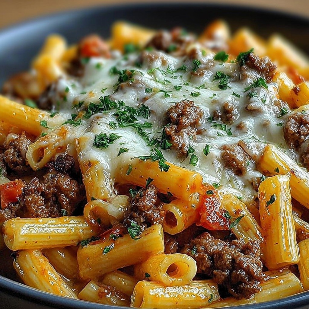 Ce plat illustre comment des ingrédients simples peuvent se transformer en un gratin savoureux et élégant, où pâtes, bœuf et fromage se combinent pour