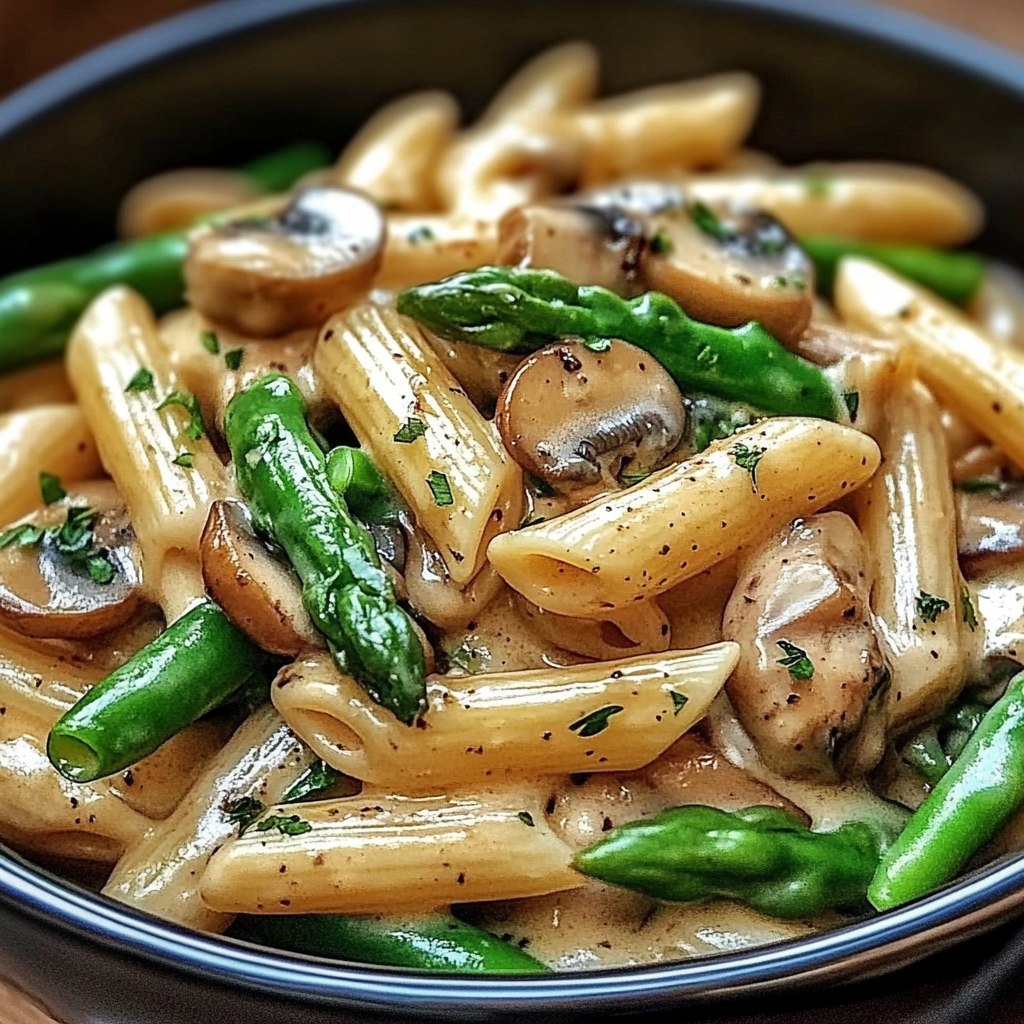 La recette de Penne au Poulet, Champignons et Asperges Crémées est un véritable délice qui combine des saveurs terreuses et crémeuses. Ce plat est une merveilleuse option pour un dîner en famille, un repas de semaine rapide ou même un repas plus raffiné pour recevoir des invités. Le poulet tendre, les champignons savoureux et les asperges croquantes se marient parfaitement dans une sauce onctueuse et riche, rehaussée d’une touche de parmesan.