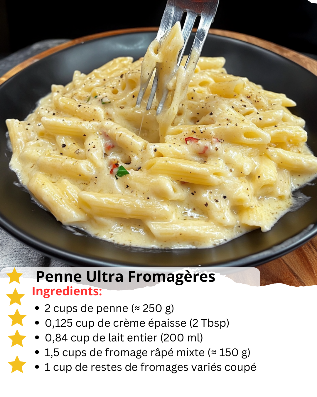 Quand la simplicité rencontre la décadence, cela donne les Penne Ultra Fromagères : un plat crémeux, fondant, et ultra réconfortant, qui transforme un simple reste de fromage en une assiette digne des plus grands bistrots. Prête en moins de 30 minutes, cette recette est économique , rapide , et surtout, adaptable à vos envies !