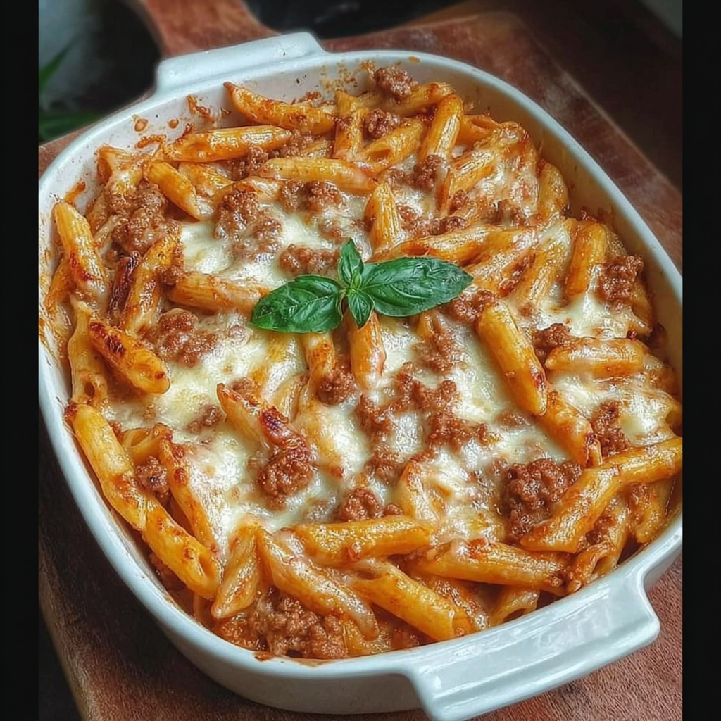 Pennettes au Four à la Viande Hachée, Sauce Béchamel et Mozzarella