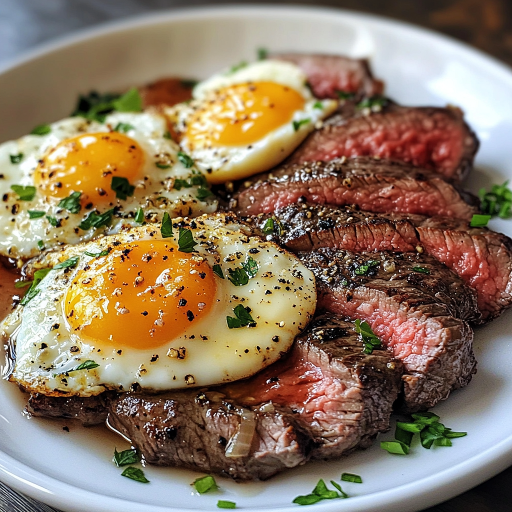 Commencez votre journée avec un plat copieux et riche en protéines ! Le petit déjeuner est souvent considéré comme le repas le plus important de la journée, et rien ne vaut un bon steak accompagné d’œufs pour bien commencer. Cette recette simple et délicieuse combine des saveurs riches et une texture parfaite, tout en étant rapide à préparer.
