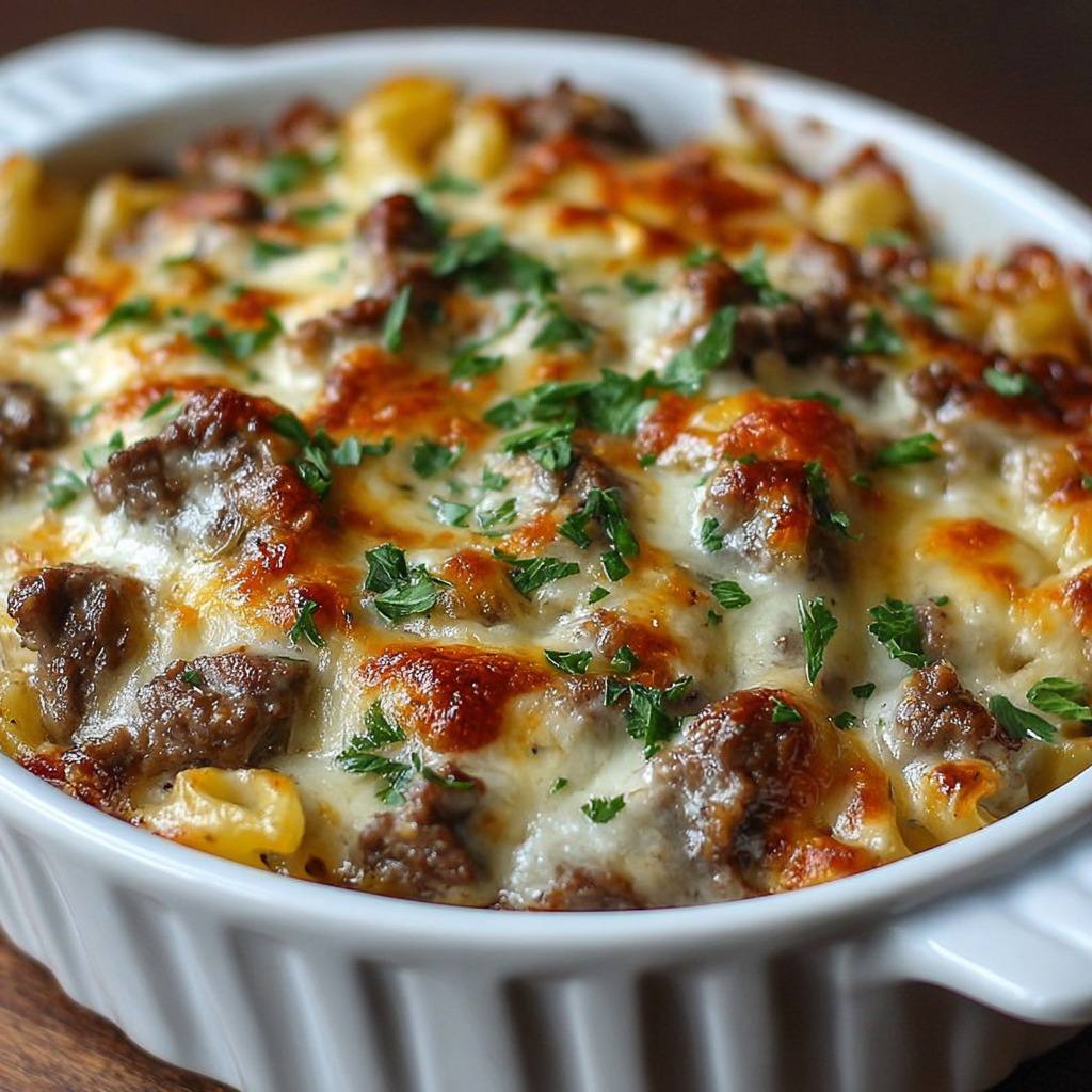 La Philly Cheese Steak Casserole est un plat familial, simple à préparer, qui offre toutes les saveurs riches et réconfortantes du célèbre sandwich sous une forme plus pratique et conviviale. Sa sauce crémeuse et son gratin de fromage apportent une gourmandise irrésistible, tandis que la viande tendre et les légumes savoureux garantissent un équilibre parfait.