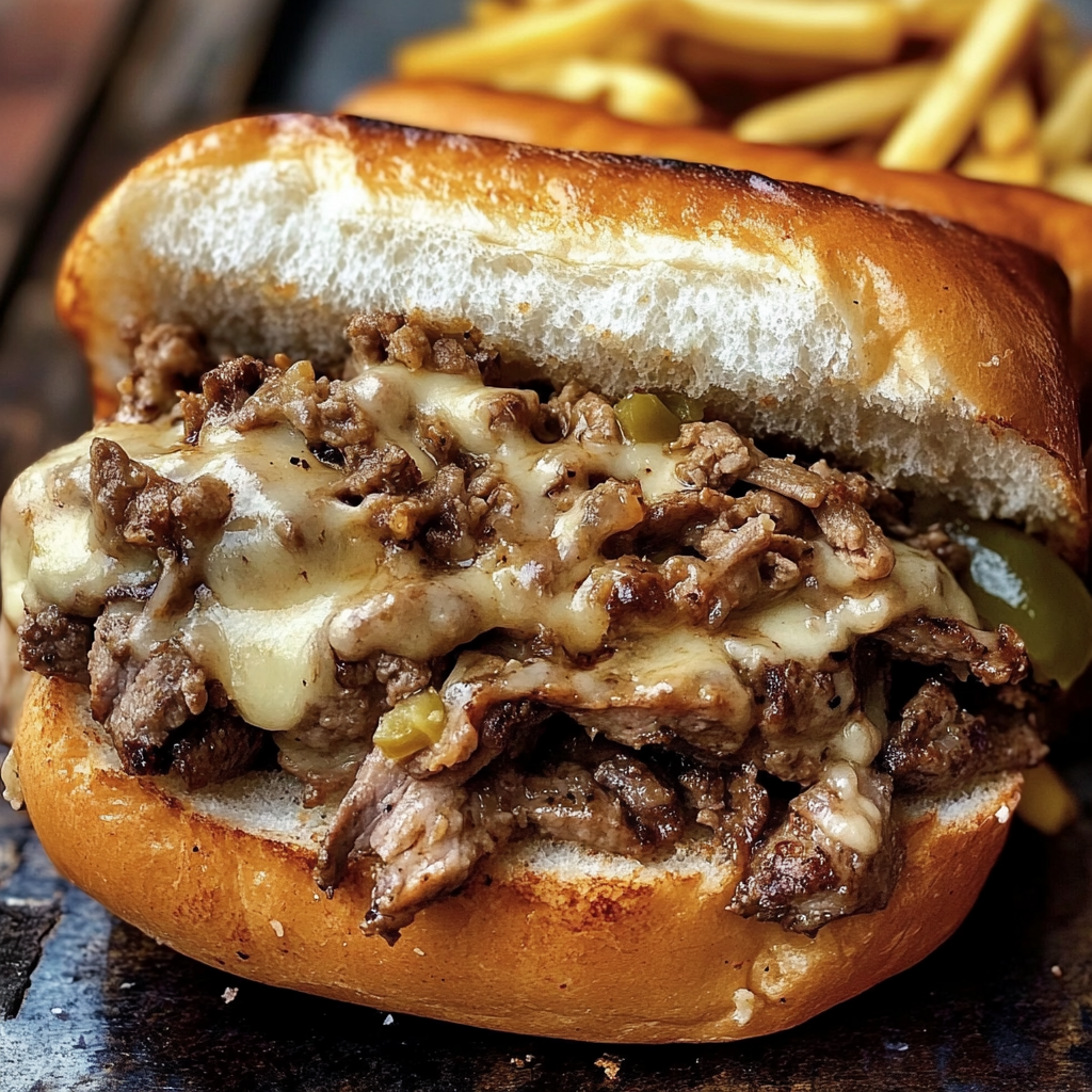 - Assemblage du sandwich : Servez le steak dans un pain croustillant, et garnissez-le de fromage fondu pour créer un véritable cheesesteak à la Philly.
