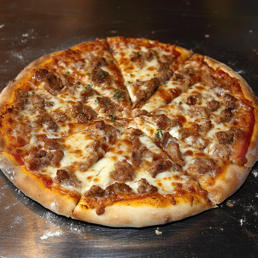 La mozzarella fondante apporte une onctuosité irrésistible à la pizza. Elle se marie harmonieusement avec la viande et la sauce, créant un contraste parfait entre le croustillant de la pâte et le fondant du fromage.