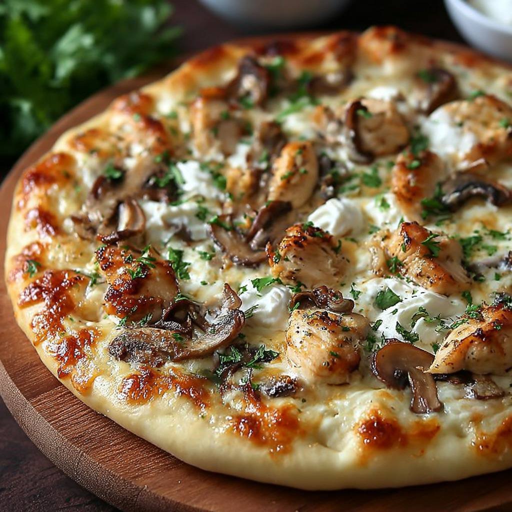 Bien cuite, cette pizza offre un bon équilibre entre saveurs animales (poulet et fromages), saveurs végétales (champignons, herbes) et texture agréable. Elle fonctionne en toute saison, et convient autant à un repas en solo que pour recevoir des amis ou en famille.